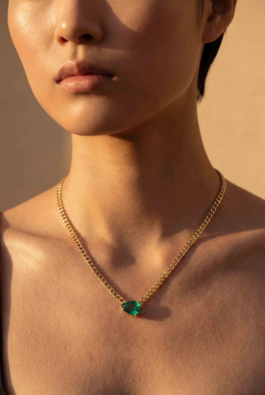 Colar em ouro 18k com Esmeralda Gota e brilhantes