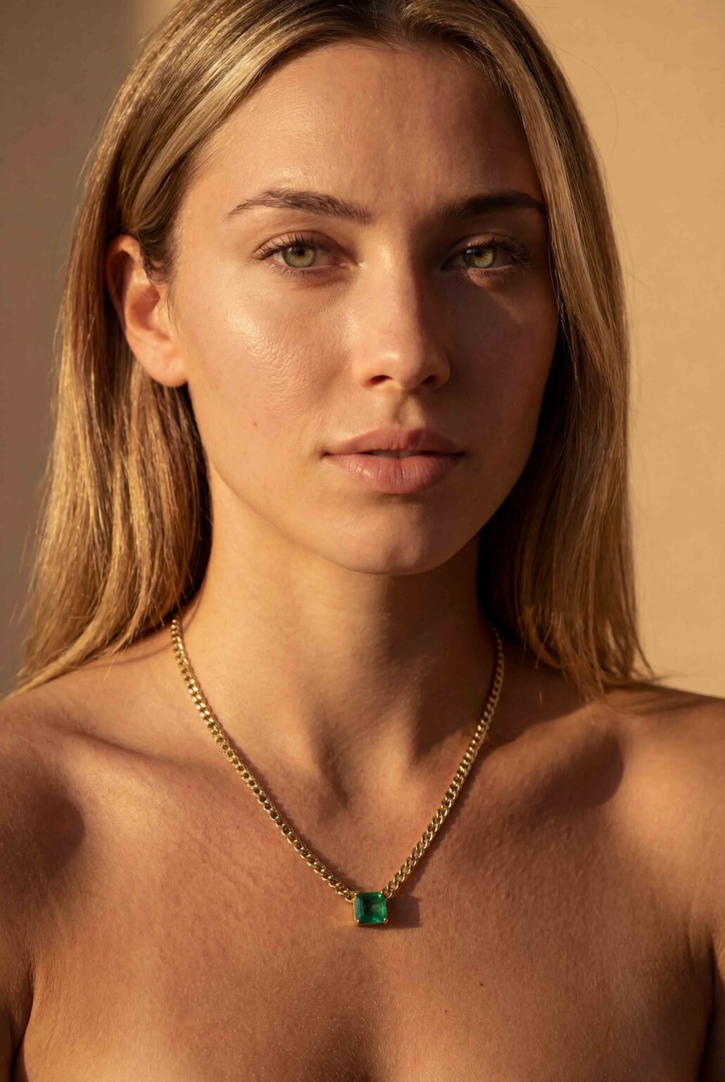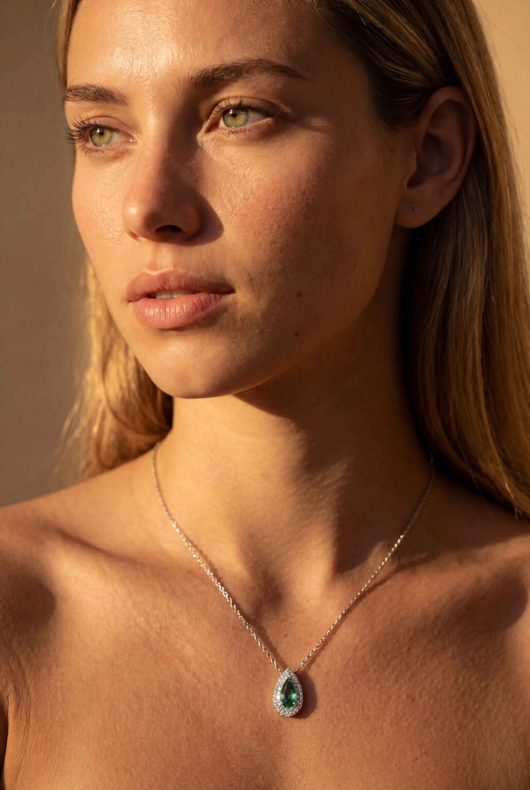 Colar em ouro 18k com Esmeralda Verde redonda e brilhantes
