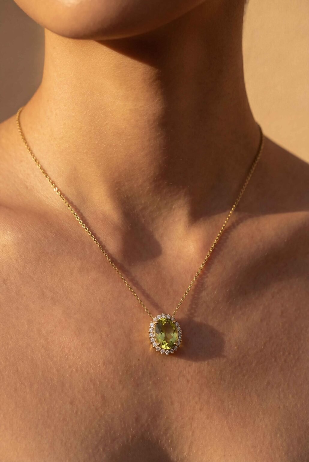 Colar em ouro 18k com Berilo Verde oval e brilhantes