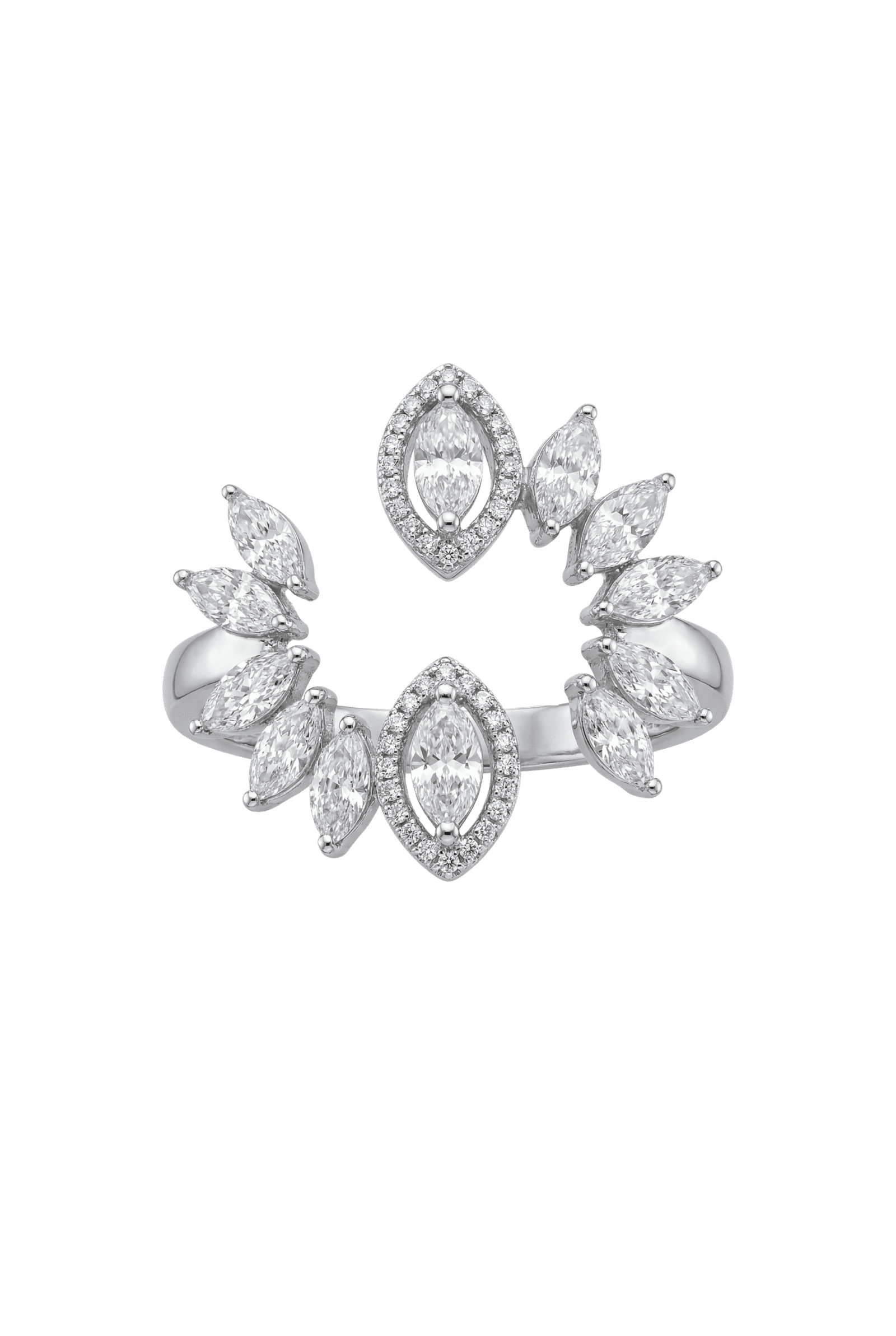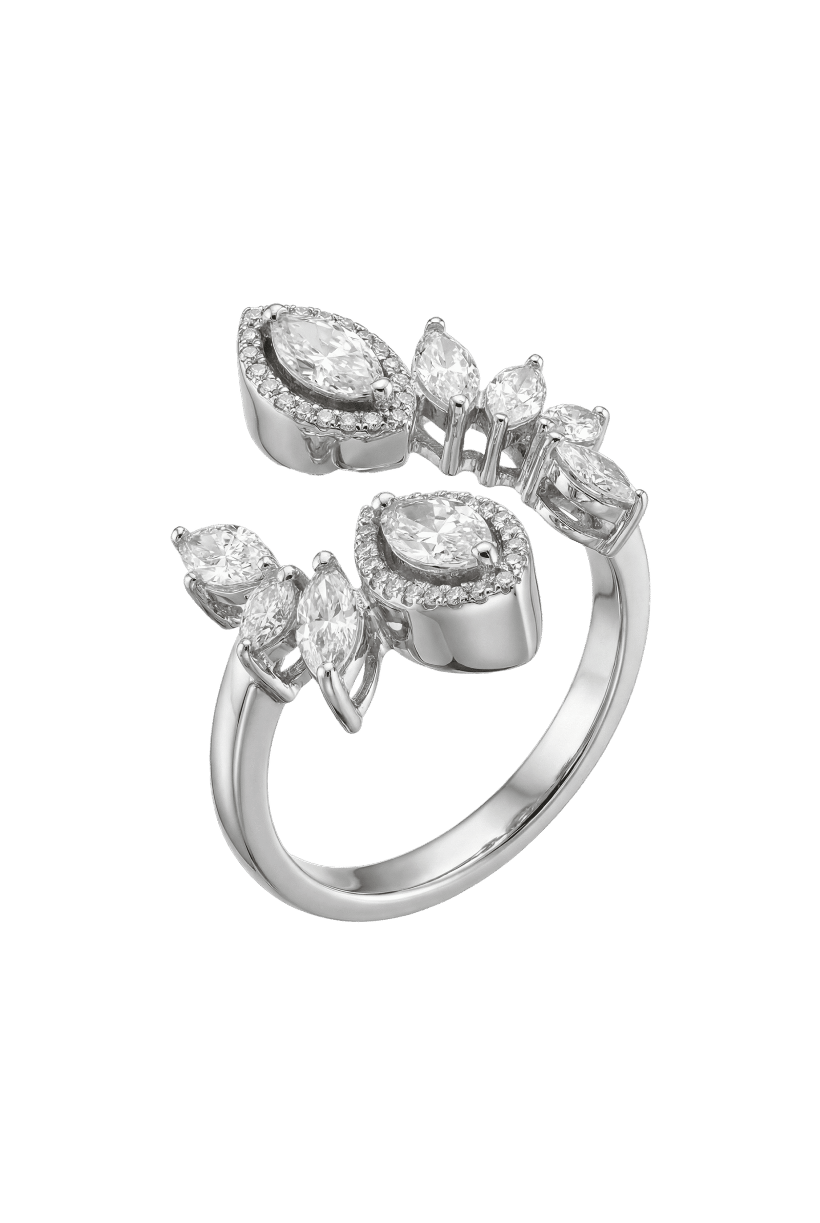 Anel em ouro branco 18k com Diamantes gota e brilhantes