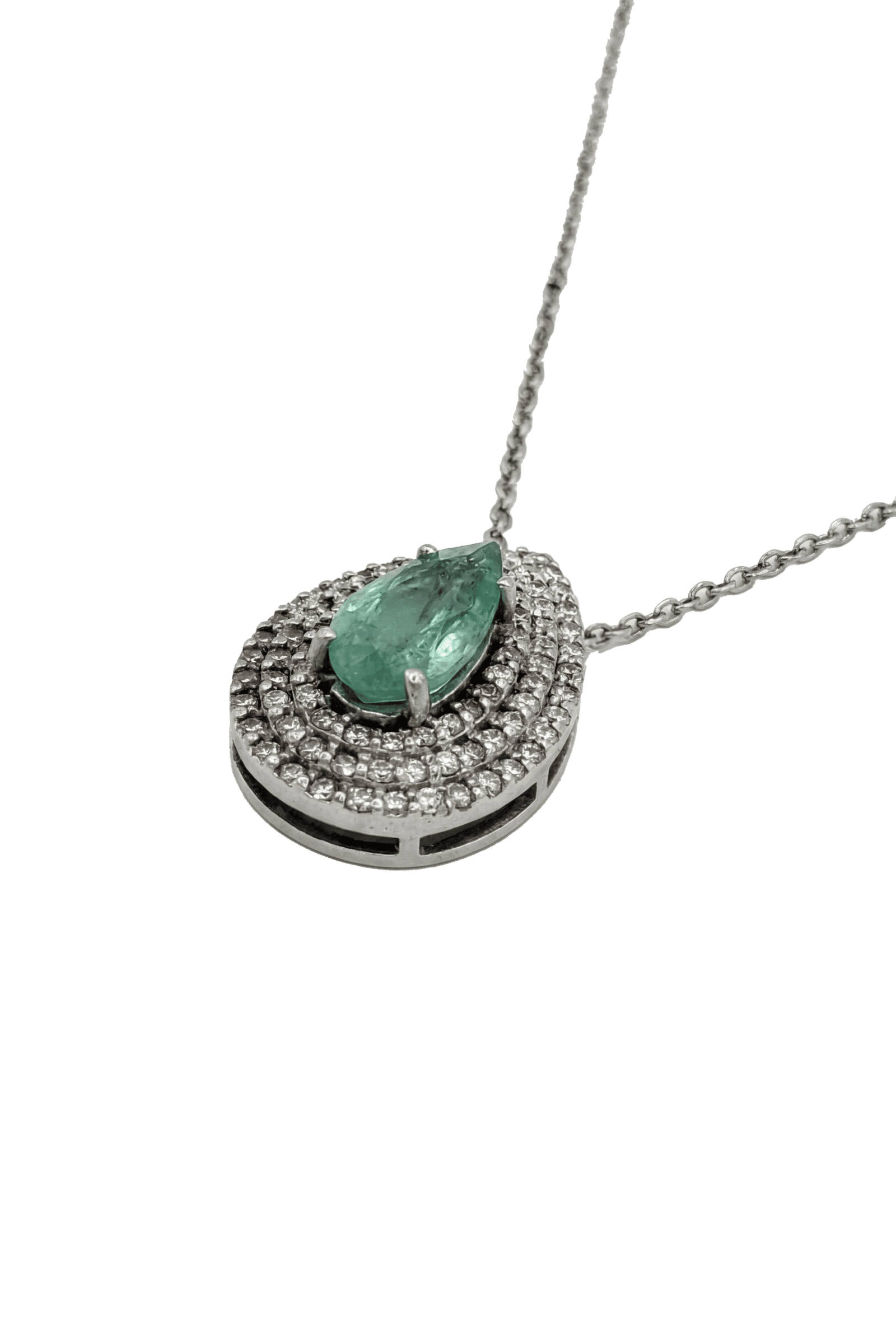 Colar em ouro 18k com Esmeralda Gota e brilhantes