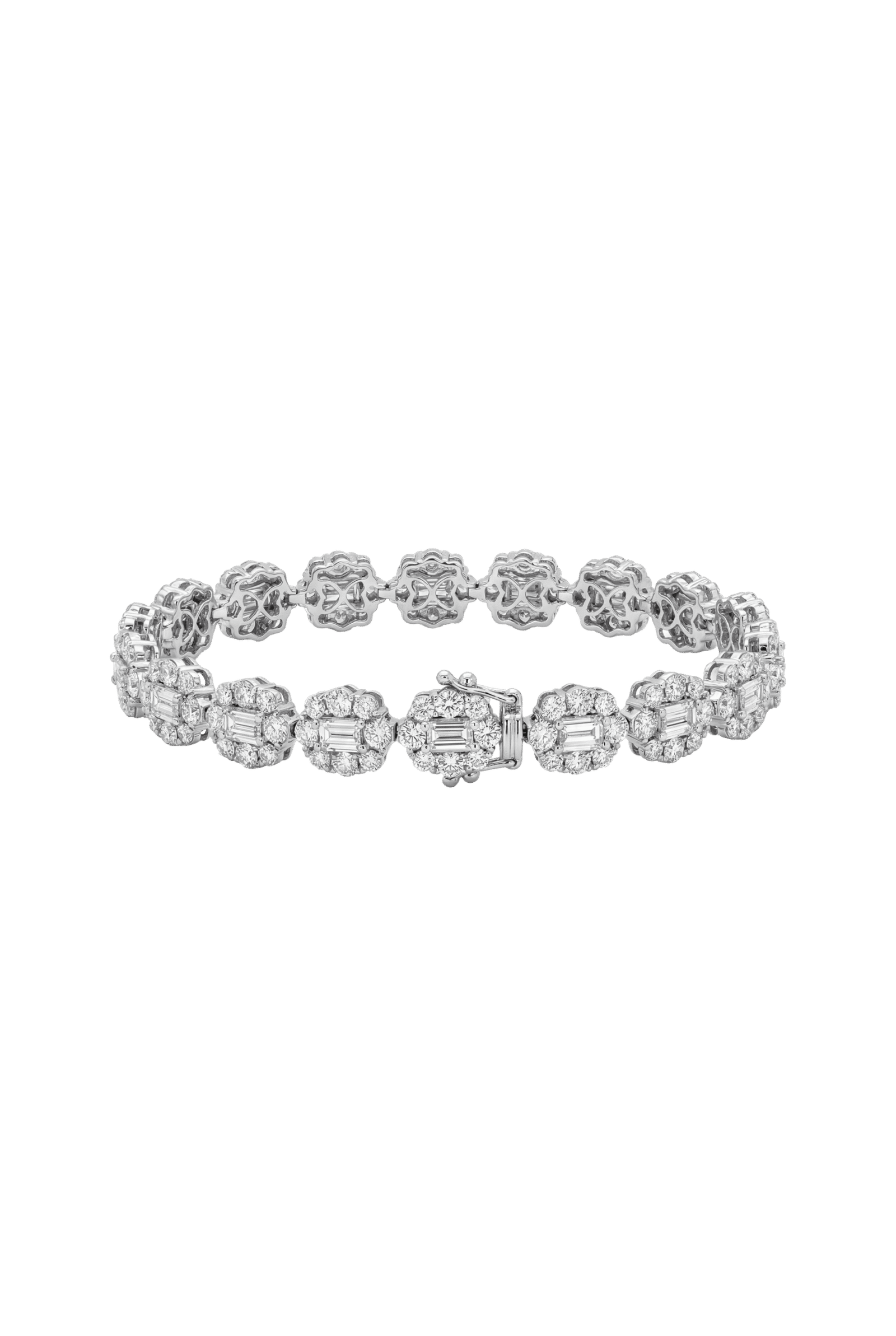 Colar em ouro branco com Diamantes baguete e brilhantes