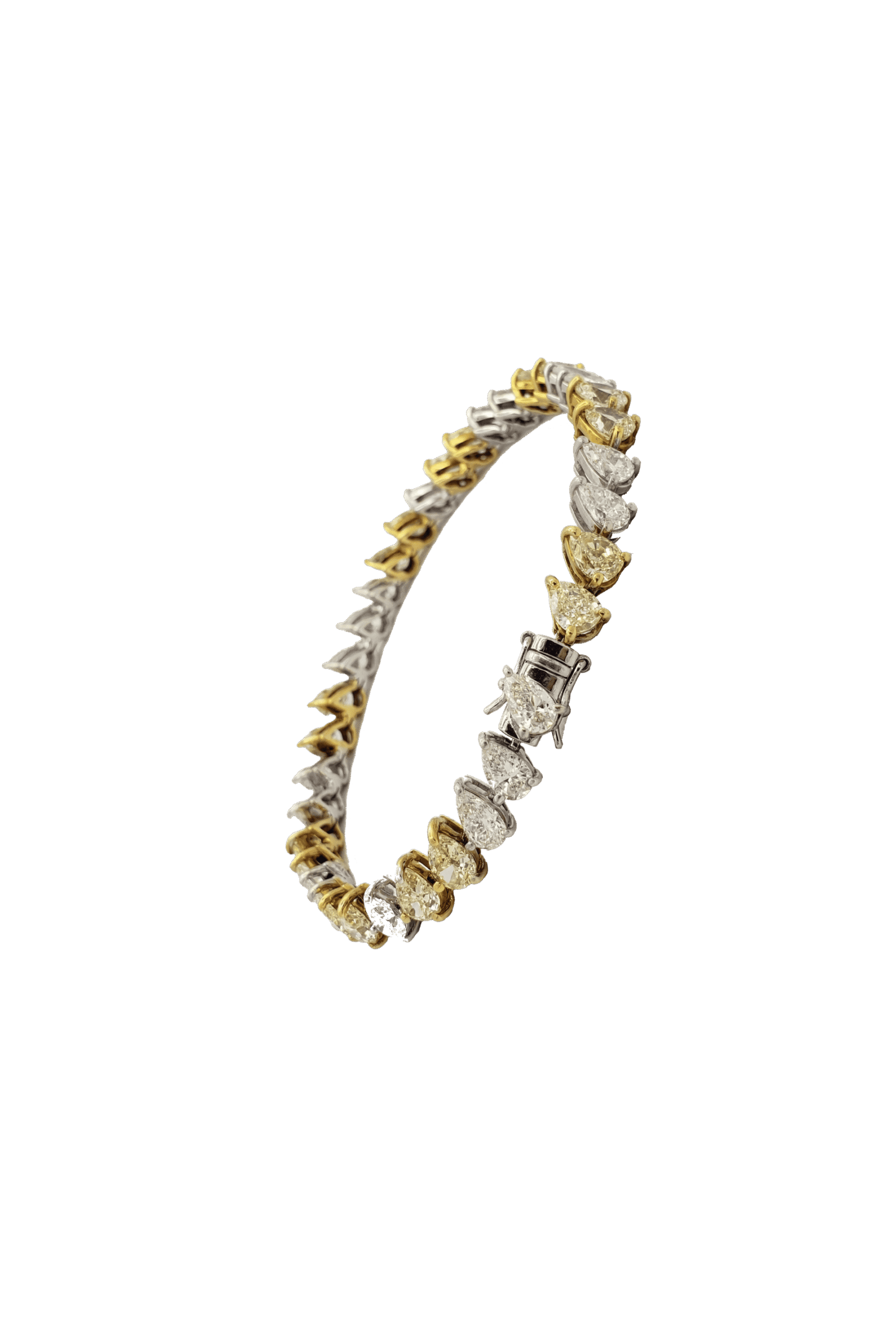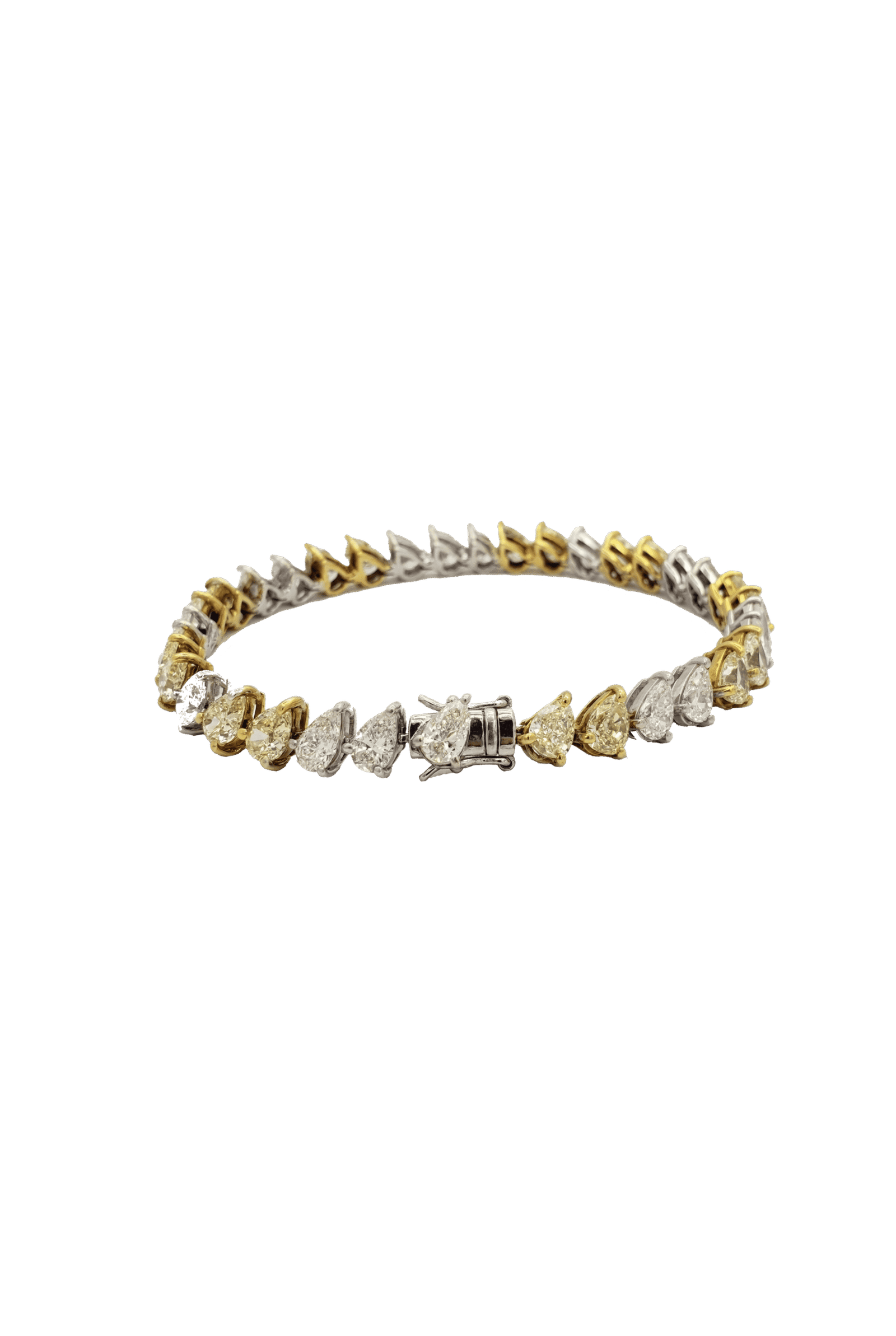Colar em ouro branco 18k com diamantes em gota Fancy e brilhantes