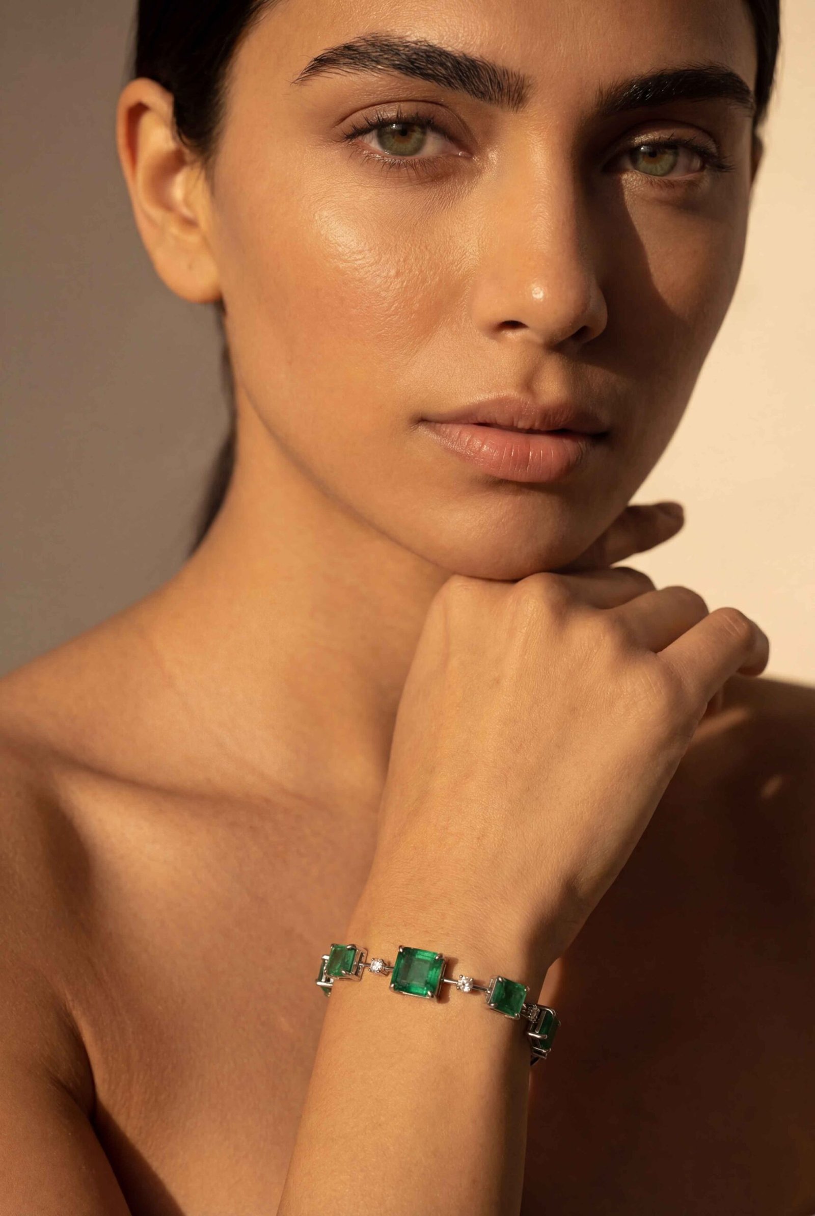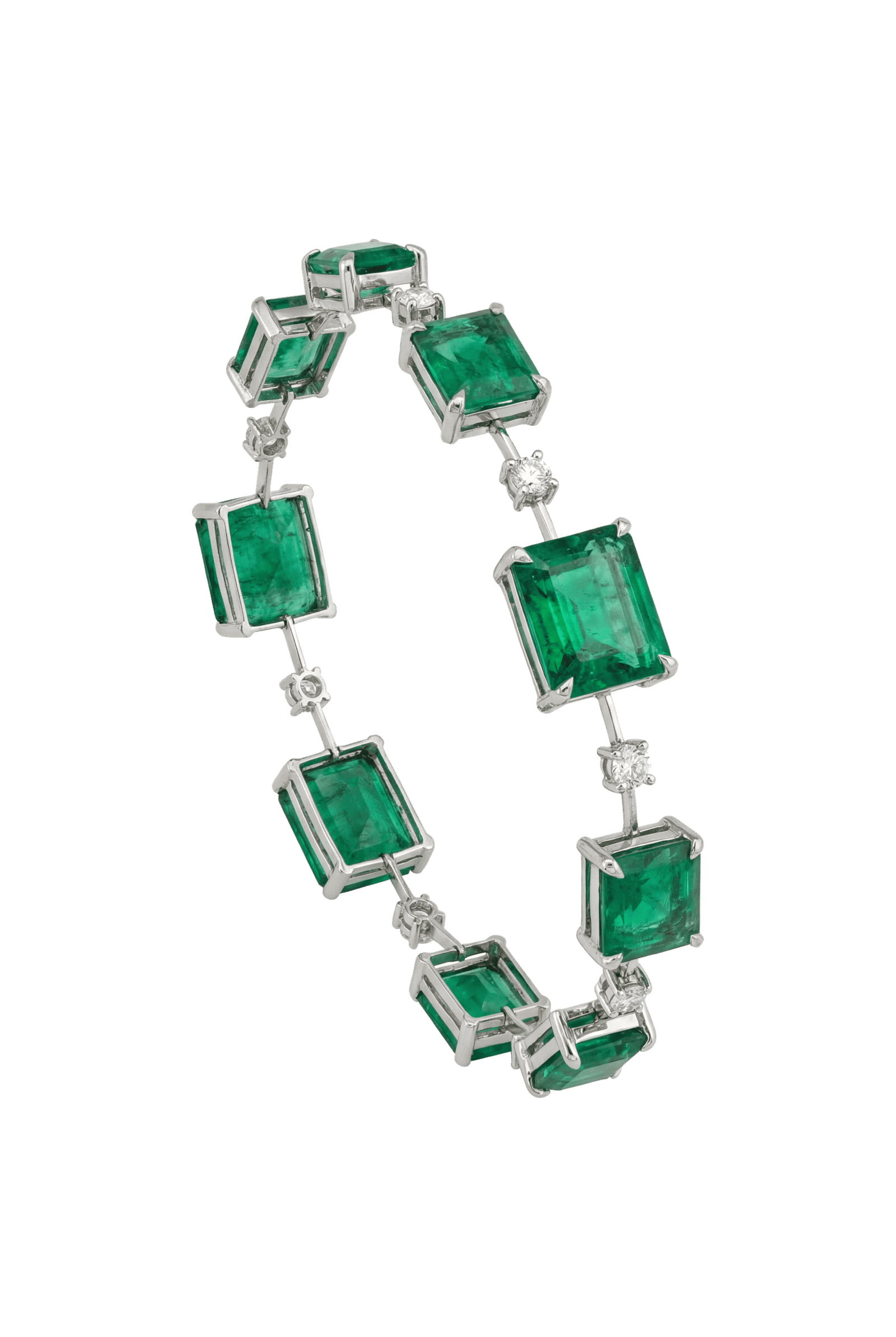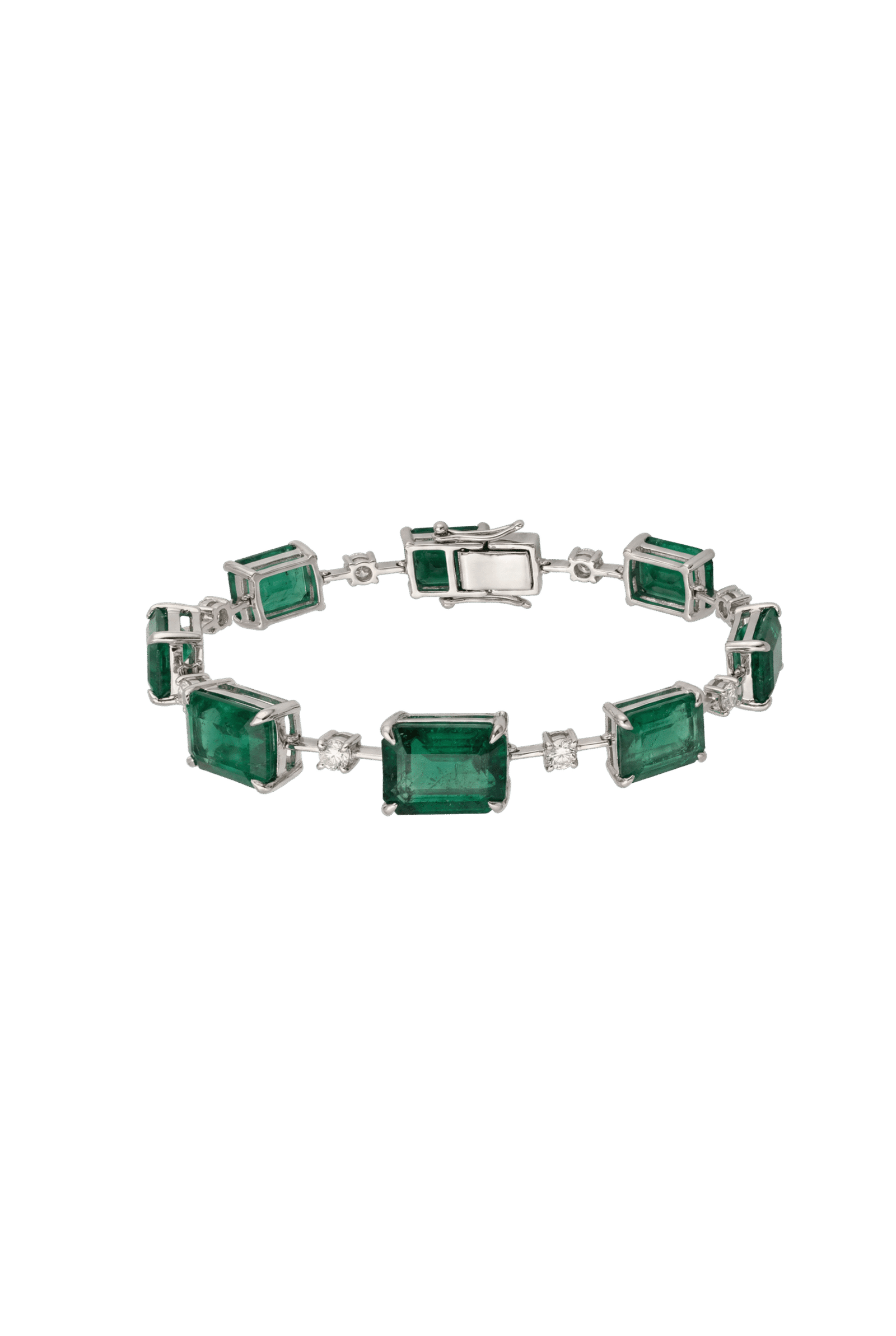 Pulseira em ouro branco 18k com Esmeraldas Verde e brilhantes